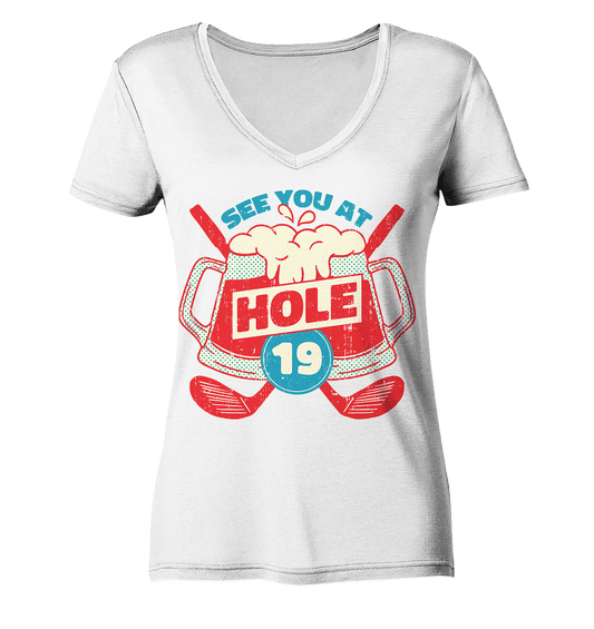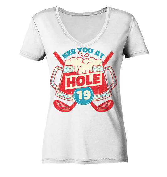 Golf ,See you at Hole 19 , Wir sehen uns bei Loch 19 - Ladies Organic V-Neck Shirt