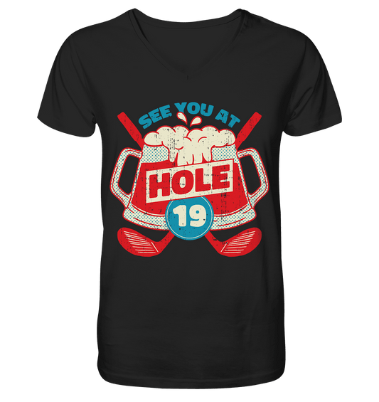 Golf ,See you at Hole 19 , Wir sehen uns bei Loch 19 - Mens Organic V-Neck Shirt
