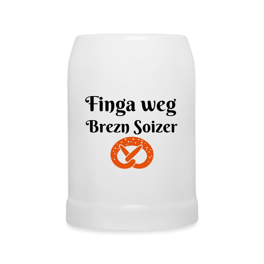 Bierkrug "Finga weg, Brezn Soizer": A echter bayerischer Klassiker!