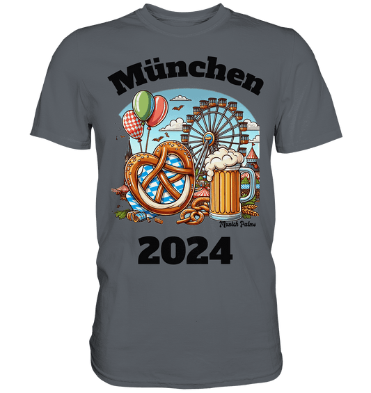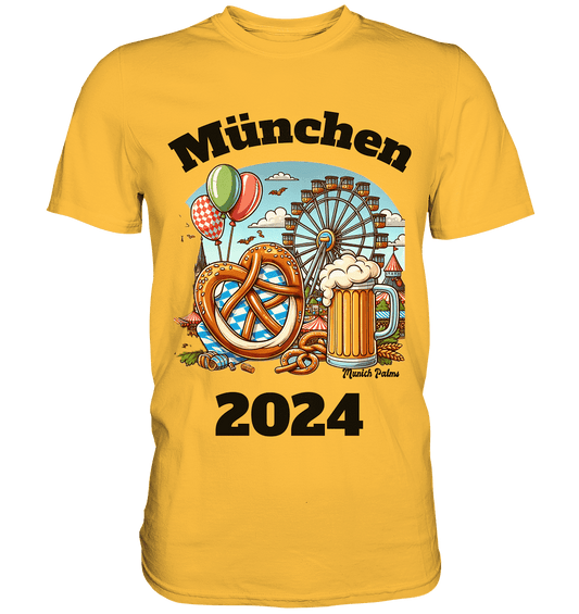 München 2024 mit Volksfest ,Frühlingsfest,Kirmes,Oktoberfest -Design Munich Palms -auch mit dem Namen Deiner Stadt - Premium Shirt