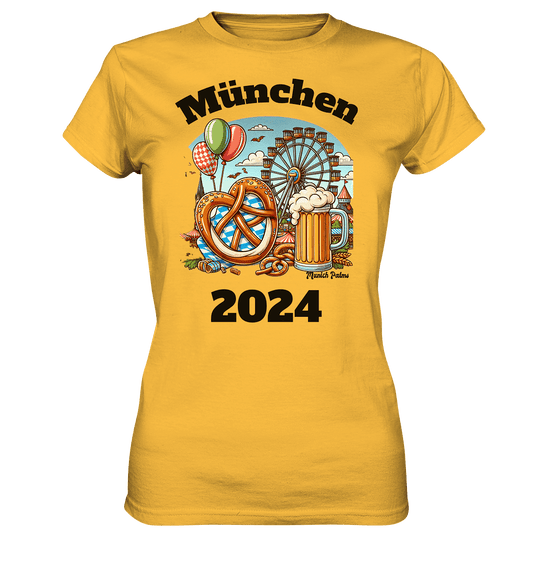 München 2024 mit Volksfest ,Frühlingsfest,Kirmes,Oktoberfest -Design Munich Palms -auch mit dem Namen Deiner Stadt - Ladies Premium Shirt