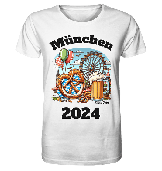 München 2024 mit Volksfest ,Frühlingsfest,Kirmes,Oktoberfest -Design Munich Palms -auch mit dem Namen Deiner Stadt - Organic Shirt