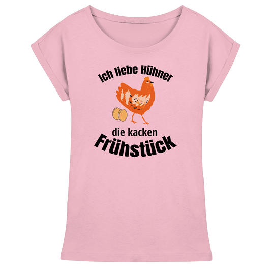 Ich liebe Hühner die kacken Frühstück - Womens Roll-Up T-Shirt