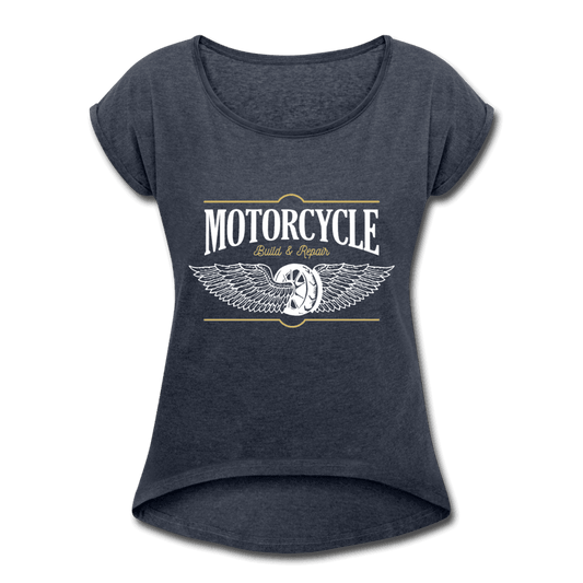 Frauen T-Shirt mit gerollten Ärmeln Motorrad - Motorcycle