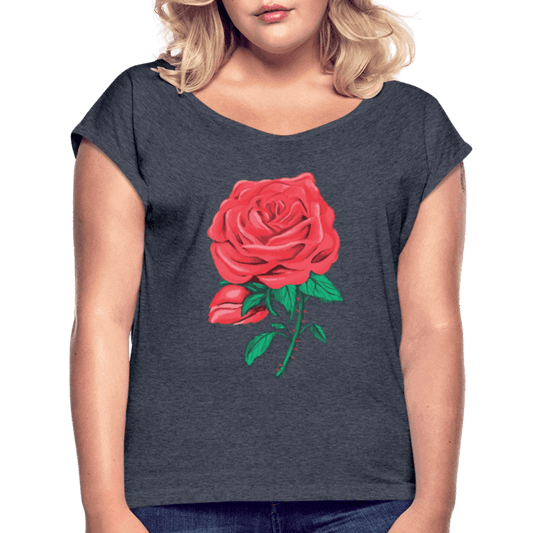 Damen Frauen T-Shirt mit gerollten Ärmeln Rose