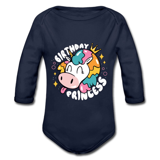 Baby Bio-Langarm-Body Geburtstag Prinzessin -Einhorn