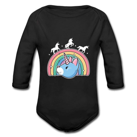Baby Bio-Langarm-Body Regenbogen Einhorn Unicorn Katze