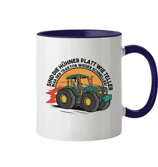 Sind die Hühner platt wie Teller ,war der Traktor wieder schneller - Tasse zweifarbig