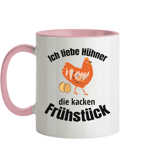 Ich liebe Hühner die kacken Frühstück - Tasse zweifarbig
