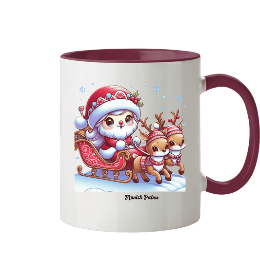 Weihnachten Nikolaus weiblich mit lieblichen Rentieren ,Design Munich Palms - Tasse zweifarbig