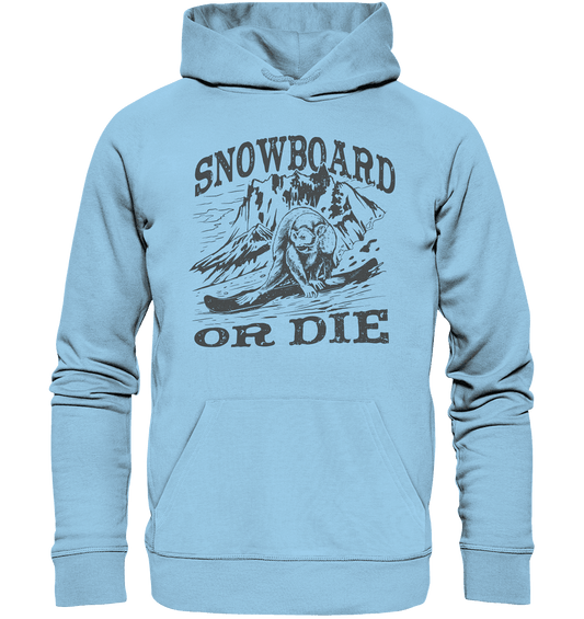 Snowboard or Die , Affe auf einem Snowboard - Organic Hoodie