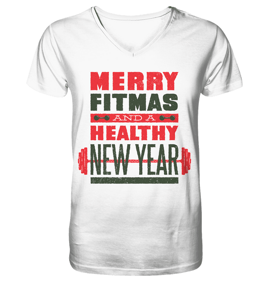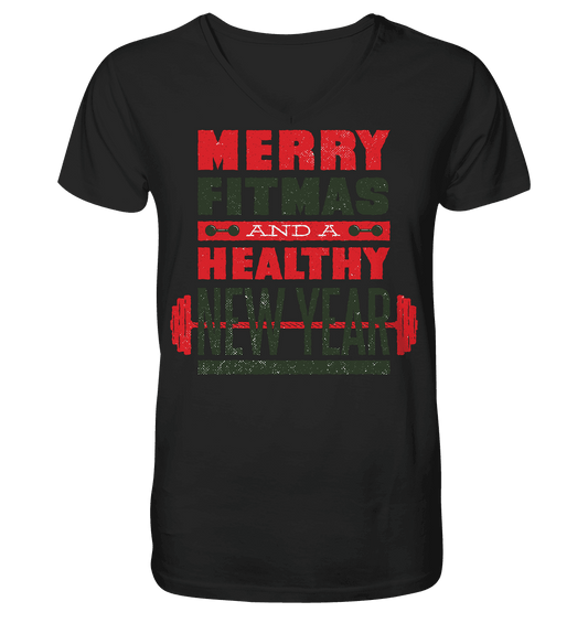 Weihnachtliches Design, Gym, Merry Fitmas and a Healthy New Year - V-Neck Shirt