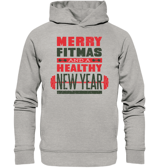 Weihnachtliches Design, Gym, Merry Fitmas and a Healthy New Year - Organic Hoodie