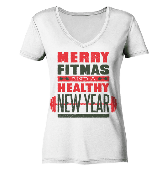 Weihnachtliches Design, Gym, Merry Fitmas and a Healthy New Year - Ladies V-Neck Shirt