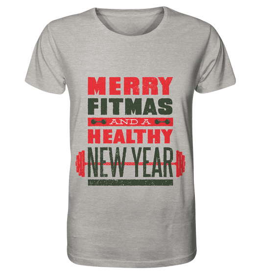 Weihnachtliches Design, Gym, Merry Fitmas and a Healthy New Year - Organic Shirt (meliert)