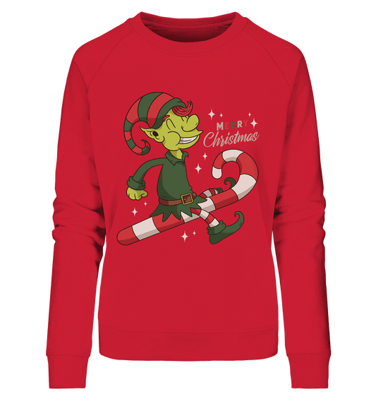 Weihnacht Design Netter Weihnachtself mit Zuckerstange Merry Christmas - Ladies Organic Sweatshirt