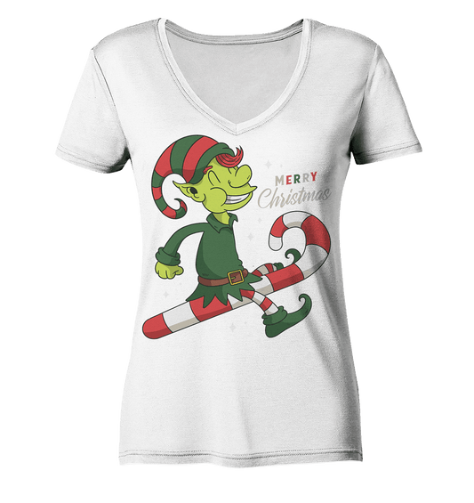 Weihnacht Design Netter Weihnachtself mit Zuckerstange Merry Christmas - Ladies V-Neck Shirt