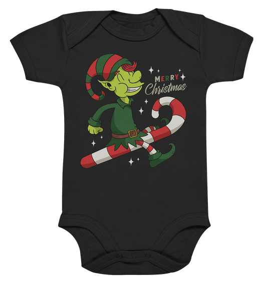 Weihnacht Design Netter Weihnachtself mit Zuckerstange Merry Christmas - Organic Baby Bodysuite