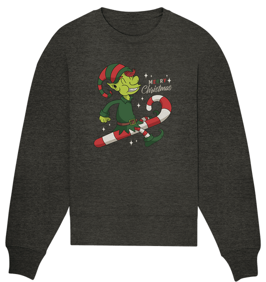 Weihnacht Design Netter Weihnachtself mit Zuckerstange Merry Christmas - Organic Oversize Sweatshirt