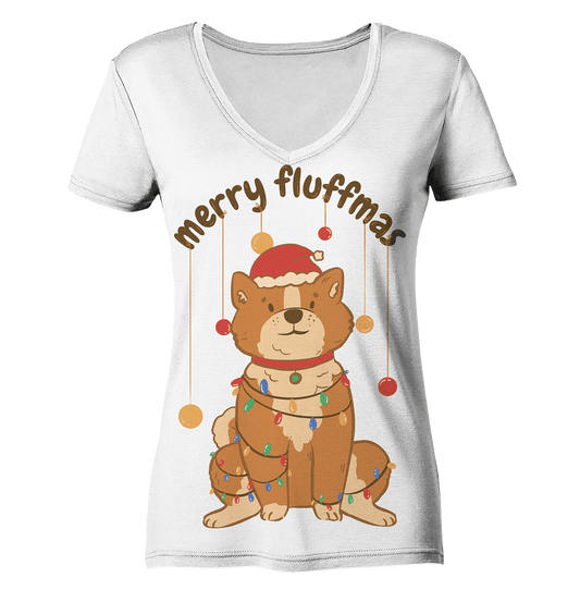 Weihnachtliches Motiv Fun Merry Fluffmas - Ladies V-Neck Shirt