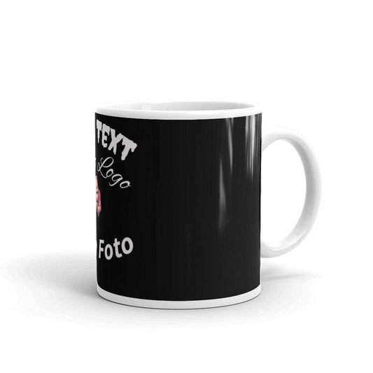Weiß glänzende Tasse ,mit Druck nach Wunsch Logo,Text,Foto auch mit schwarzem Hintergrund