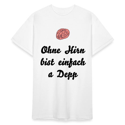A gscheits Herren Gildan Heavy T-Shirt : "Ohne Hirn bist einfach a Depp"