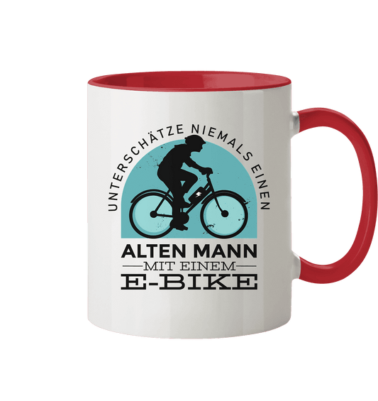Alten Mann mit einem E-Bike - Tasse zweifarbig