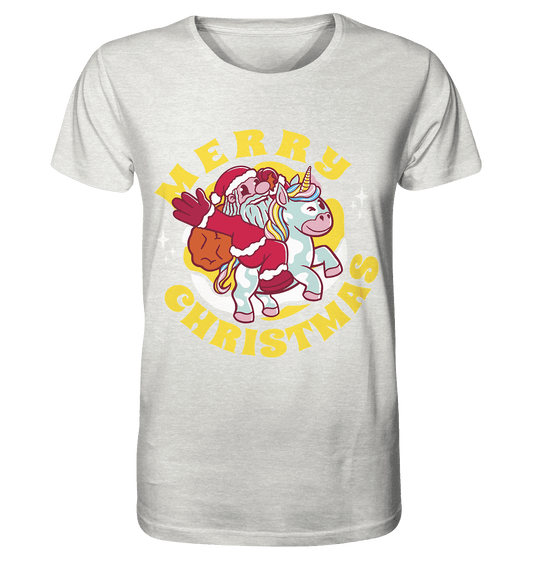 Nikolaus auf Einhorn reitend , Santa Claus Unicorn ,Merry Christmas - Organic Shirt (meliert)