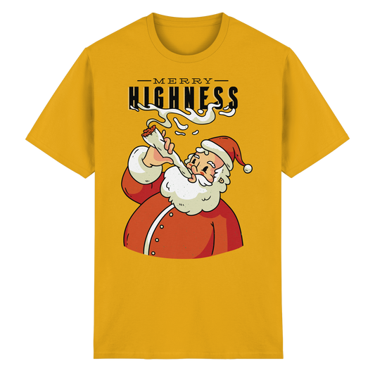 Ein weihnachtliches Motiv mit einem kiffenden Weihnachtsmann Nikolaus Merry Highness - Heavy Cotton T-Shirt