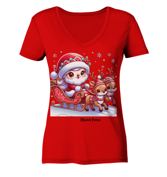 Weihnachten Nikolaus weiblich mit lieblichen Rentieren ,Design Munich Palms - Ladies V-Neck Shirt