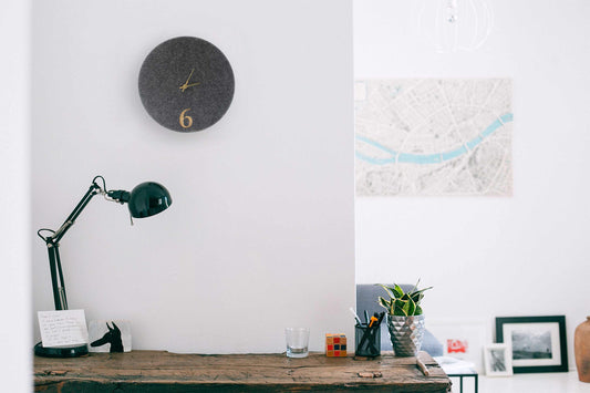 Wanduhr aus Filz und Kork 30 cm | anthrazit - gold | Design: Aarhus