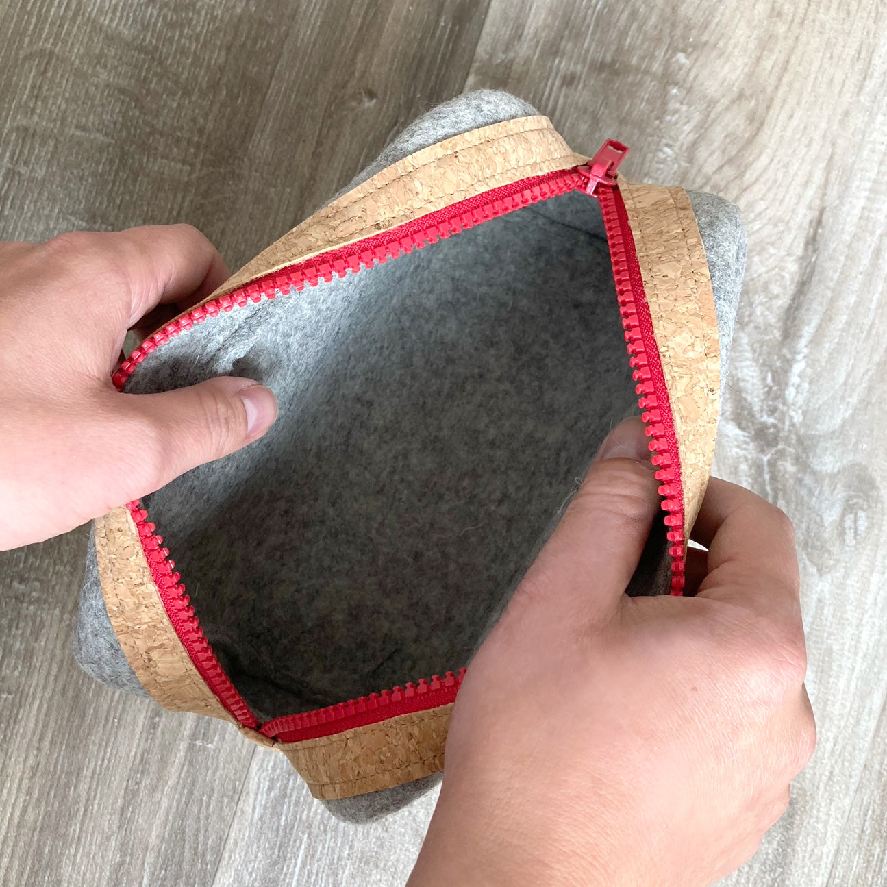 Accessory bag for cables and more | made of felt and cork | anthracite-azure