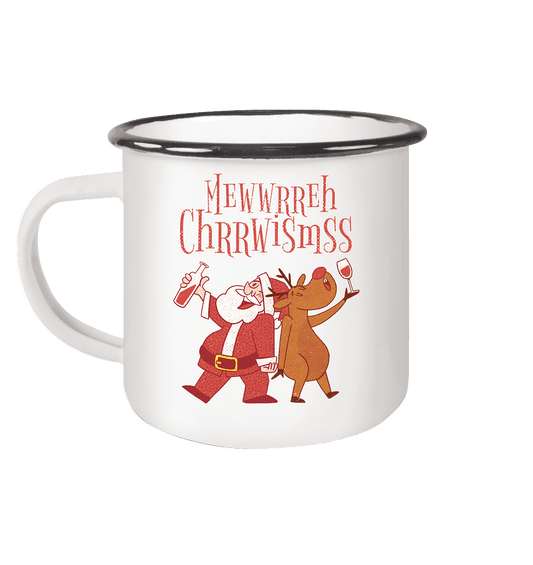 Drunk Santa Claus with Reindeer - Enamel Mug (Silver)