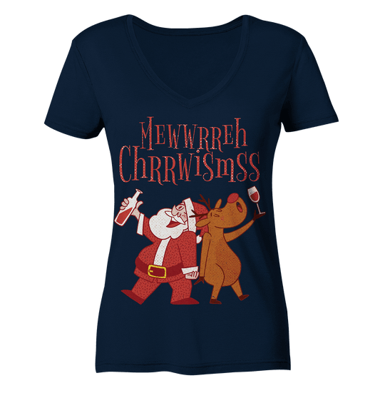 Drunk Santa Claus with Reindeer - Ladies V-Neck Shirt