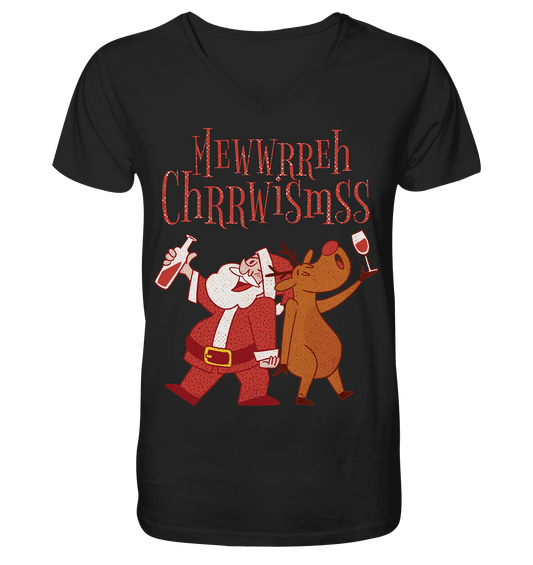 Drunk Santa with Reindeer - Mens Organic V-Neck Shirt
