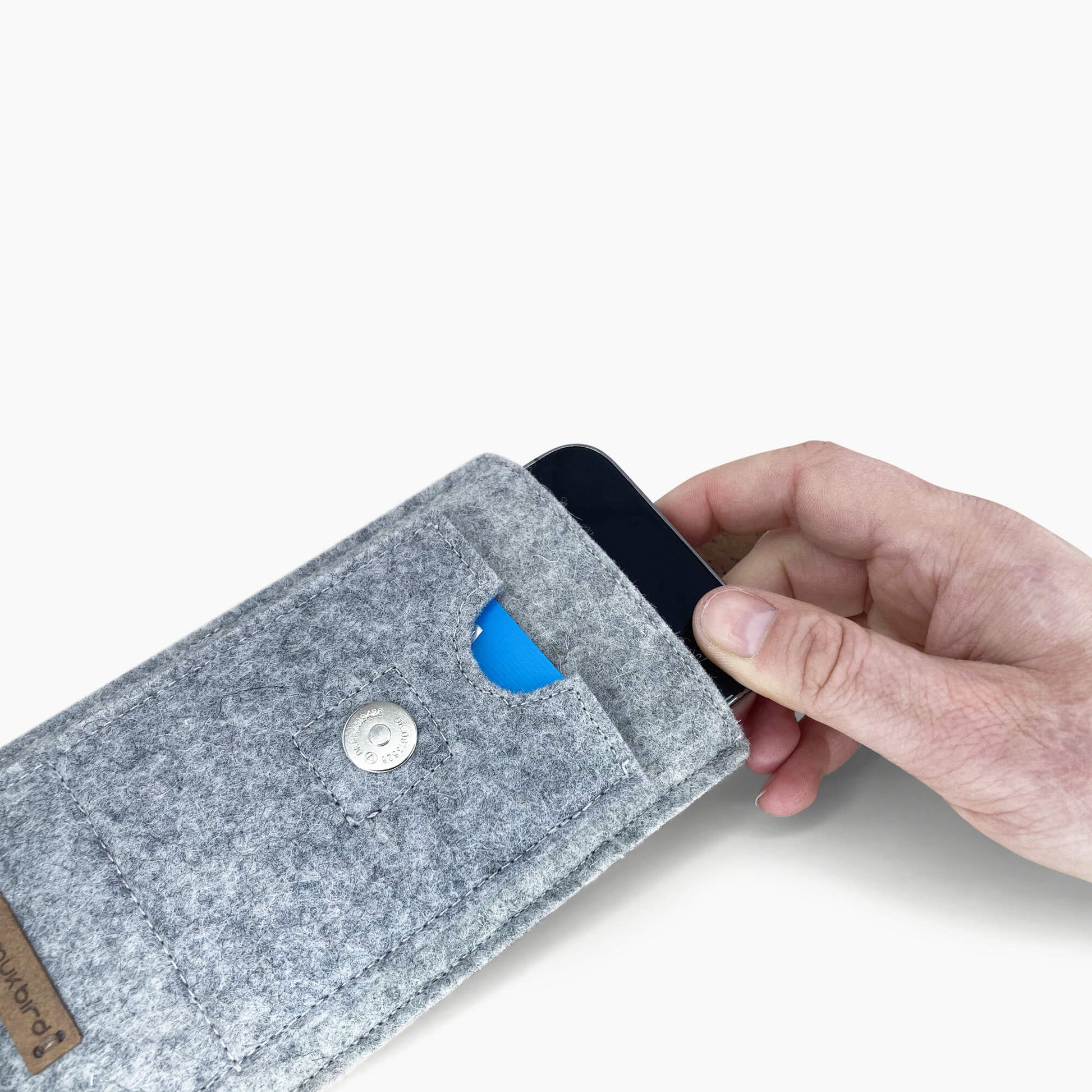 With our perfectly fitting phone case, your Samsung Galaxy A70 is fully protected and always within easy reach. Stylish and without unnecessary frills. Even seams and cleanly finished edges demonstrate our attention to detail. We use sustainable, organic materials sourced from select shepherds. Made in Germany in our own workshop, the case features an innovative closure flap made of robust cork. The flat, magnetic snap ensures both security and style. An integrated front pocket provides quick access to headphones, charging cables, or other small items, keeping everything safe and organized.