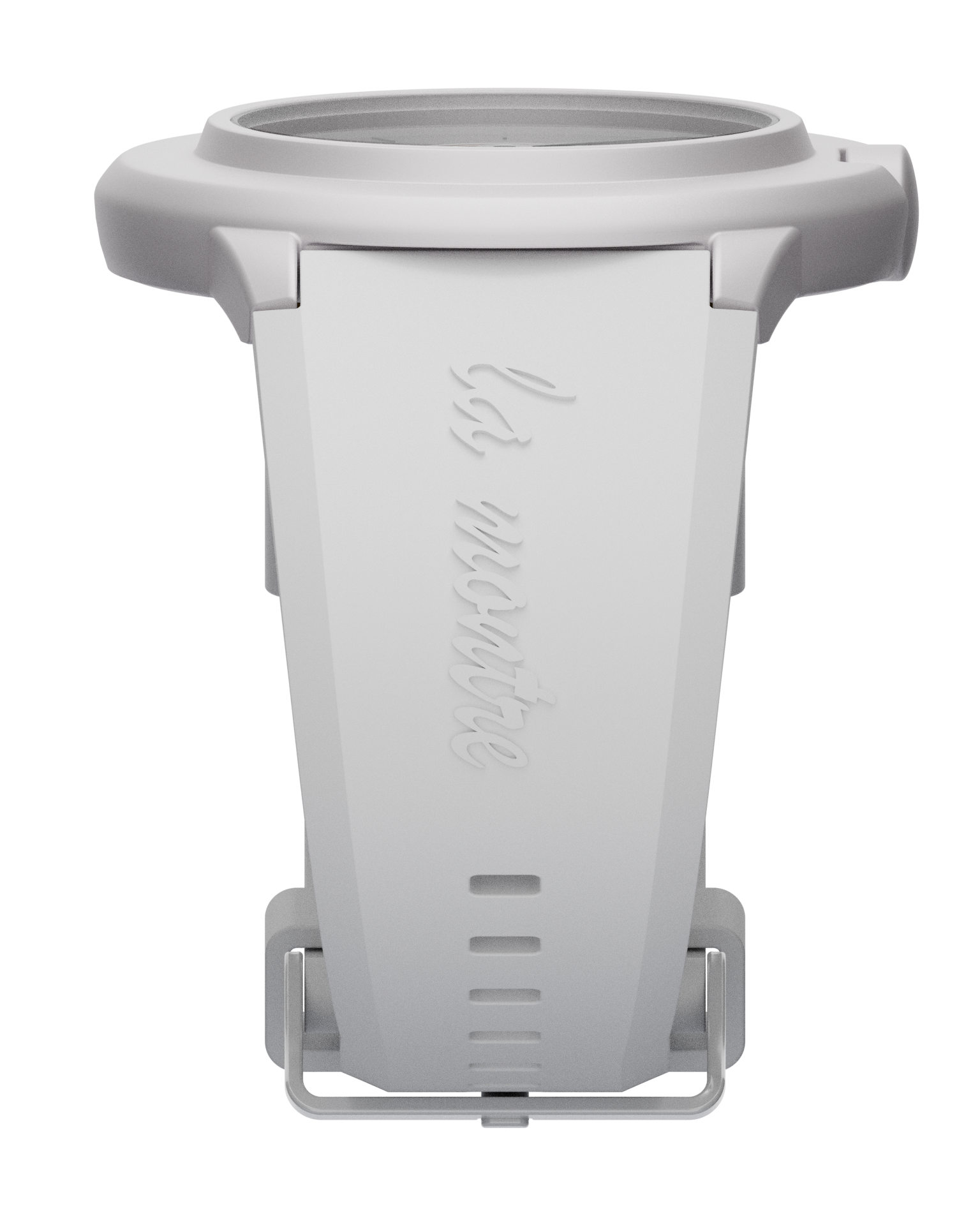A particular highlight is the date display between 10 and 11 o'clock – an unusual position that attracts attention and sparks conversation. This is complemented by the brushed aluminum dial , which creates subtle light reflections. The look is completed by the white silicone strap with its raised "La Montre" logo and pin buckle, ensuring a comfortable fit.