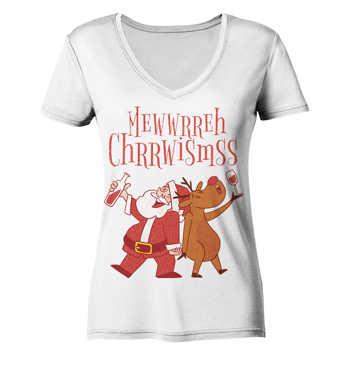 Betrunkerner Nikolaus mit Rentier - Ladies V-Neck Shirt