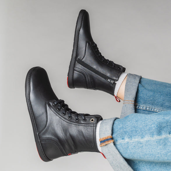 Der BLSN-040W in Schwarz ist dein perfekter Begleiter für die Übergangszeit – ein Barfußschuh Stiefel für Damen, der minimalistisches Design mit maximalem Komfort vereint.