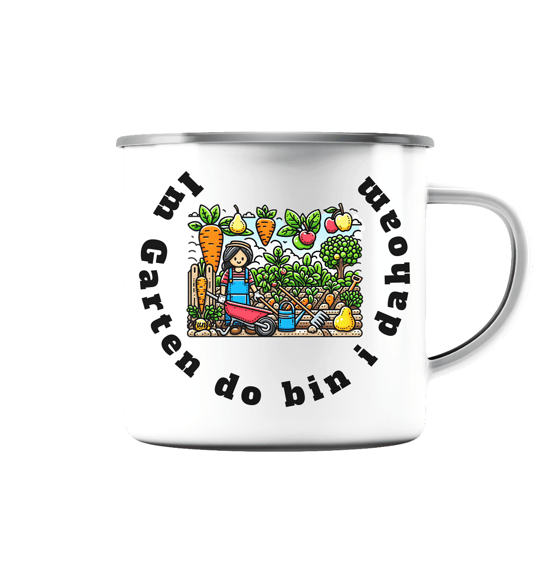 Im Garten da bin i dahoam -bayrisch -Design Munich Palms - Emaille Tasse (Silber)