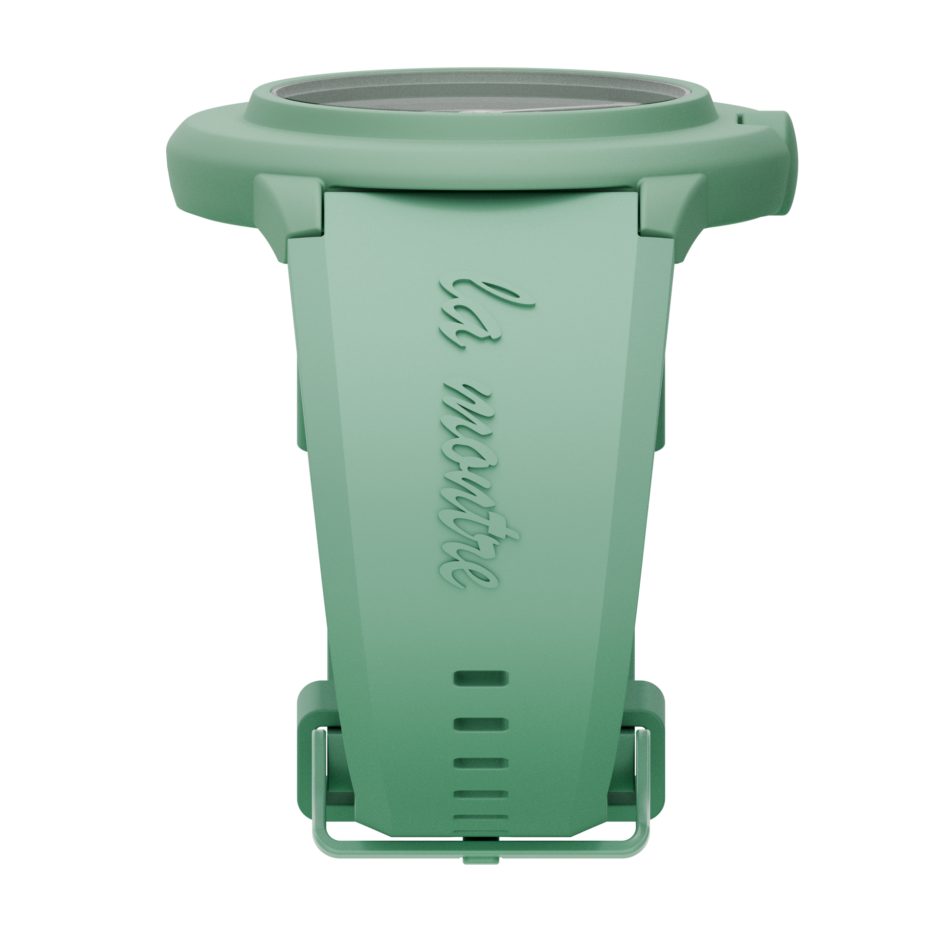Ein besonderes Highlight ist die Datumsanzeige zwischen 10 und 11 Uhr – eine ungewöhnliche Position, die Blicke auf sich zieht und für Gesprächsstoff sorgt. Dazu harmoniert das rundgebürstete Aluminium-Zifferblatt, das dezente Lichtreflexe erzeugt. Komplettiert wird der Look durch das Silikonarmband in der Farbe Mint mit erhabener „La Montre“-Prägung und Dornverschluss, das für hohen Tragekomfort sorgt.