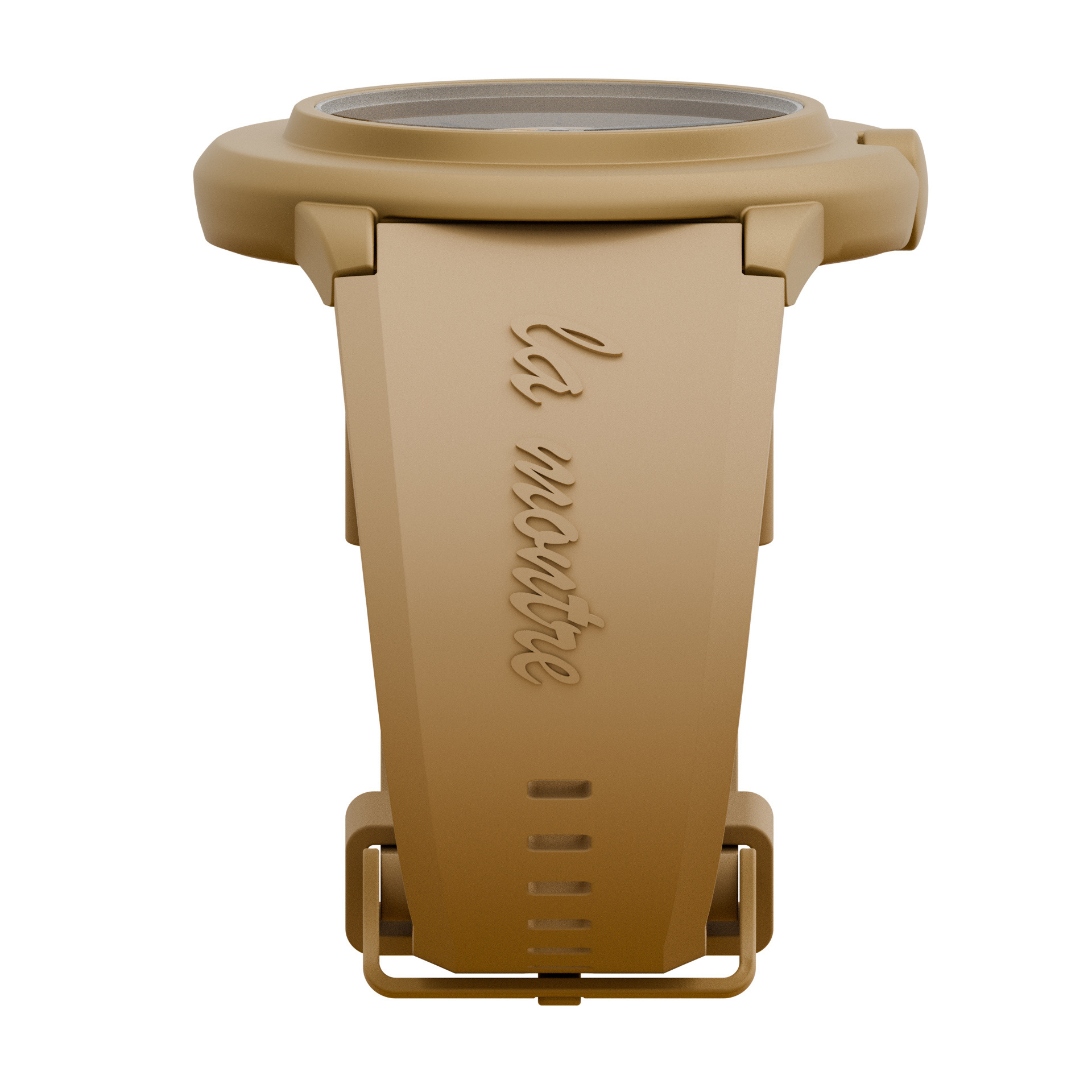 Ein besonderes Highlight ist die Datumsanzeige zwischen 10 und 11 Uhr – eine ungewöhnliche Position, die Blicke auf sich zieht und für Gesprächsstoff sorgt. Dazu harmoniert das rundgebürstete Aluminium-Zifferblatt, das dezente Lichtreflexe erzeugt. Komplettiert wird der Look durch das gelbe Silikonarmband mit erhabener „La Montre“-Prägung und Dornverschluss, das für hohen Tragekomfort sorgt.