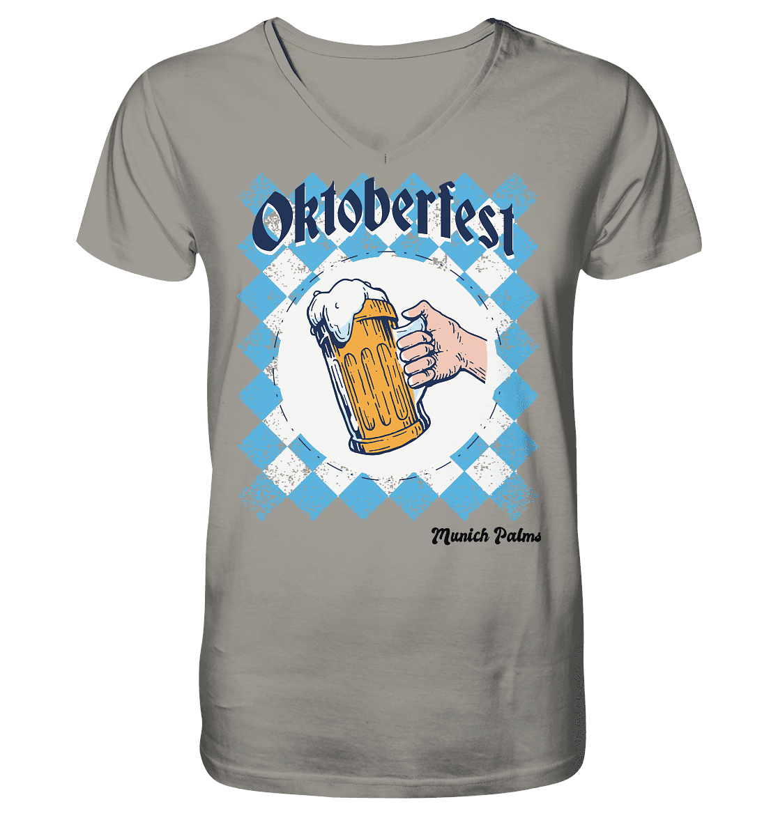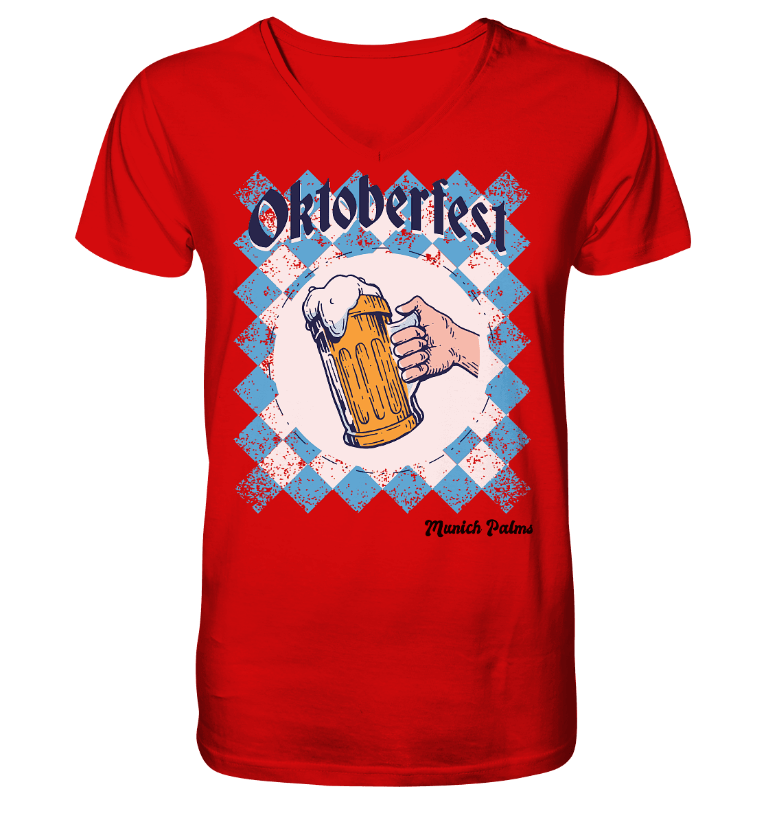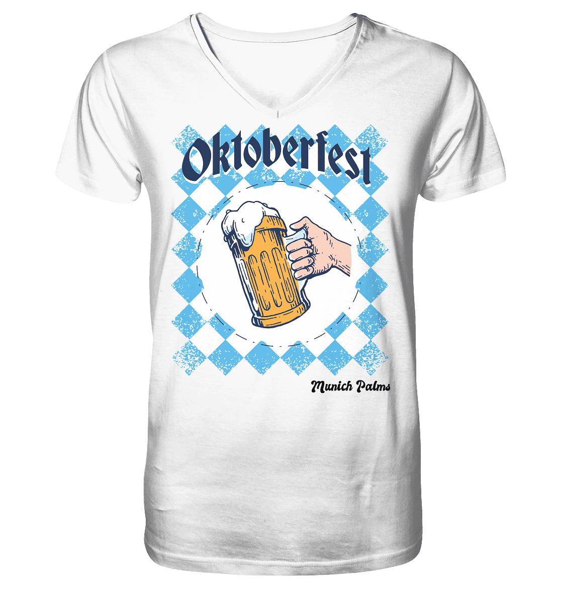 Oktoberfest Maßkrug in bayrischer Raute Design by Munich Palms - V-Neck Shirt