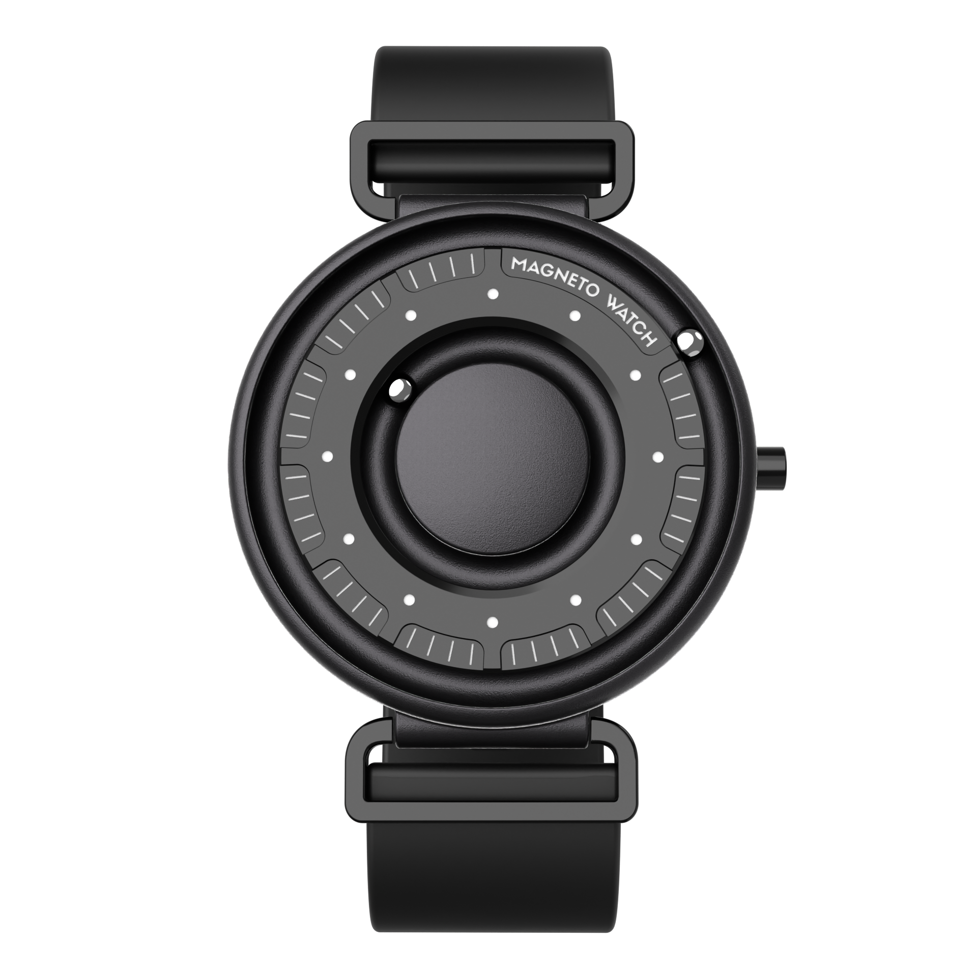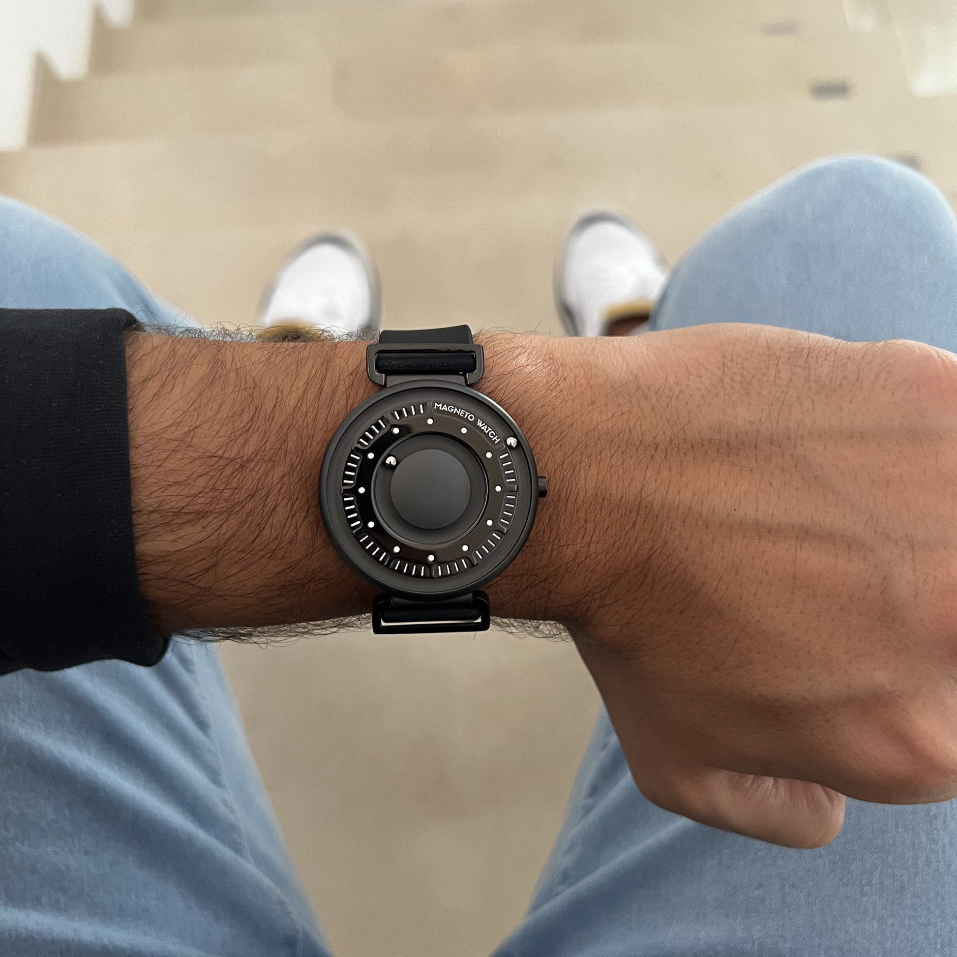 Die Primus Black überzeugt mit einem kraftvollen Auftritt in tiefem Schwarz. Ihr robustes Gehäuse in Kombination mit dem schwarzen Milanaisearmband verleiht ihr einen markanten, urbanen Look – modern, maskulin, kompromisslos. Die schwebenden magnetischen Kugeln ersetzen klassische Zeiger und machen diese Uhr zu einem echten Hingucker. Minimalistisch im Design, maximal in der Wirkung.