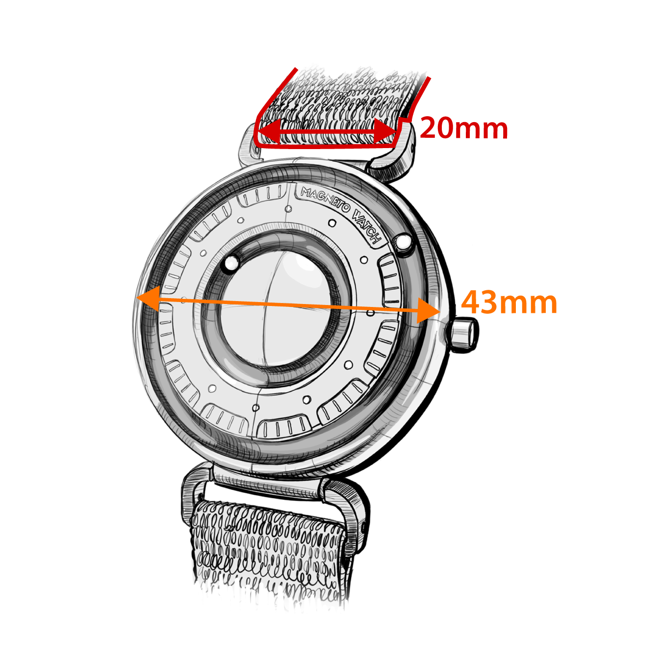 Die Primus Titan kombiniert futuristische Materialien mit einem eleganten Look. Das titangraue Gehäuse wirkt edel und technisch zugleich, das silberne Milanaisearmband sorgt für einen dezenten Glanz am Handgelenk. Wie bei allen Magneto Watches zeigt auch hier eine Kugel scheinbar schwerelos die Zeit an – ein faszinierendes Spiel aus Design und Funktion.