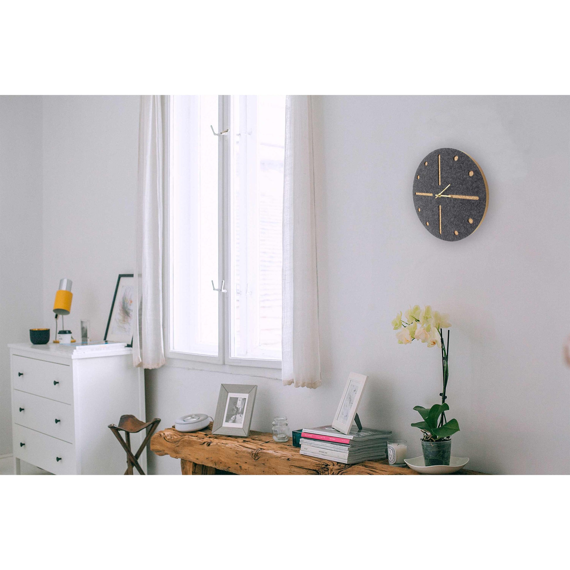 Wanduhr aus Filz und Kork 30 cm | anthrazit - gold | Design: Odense