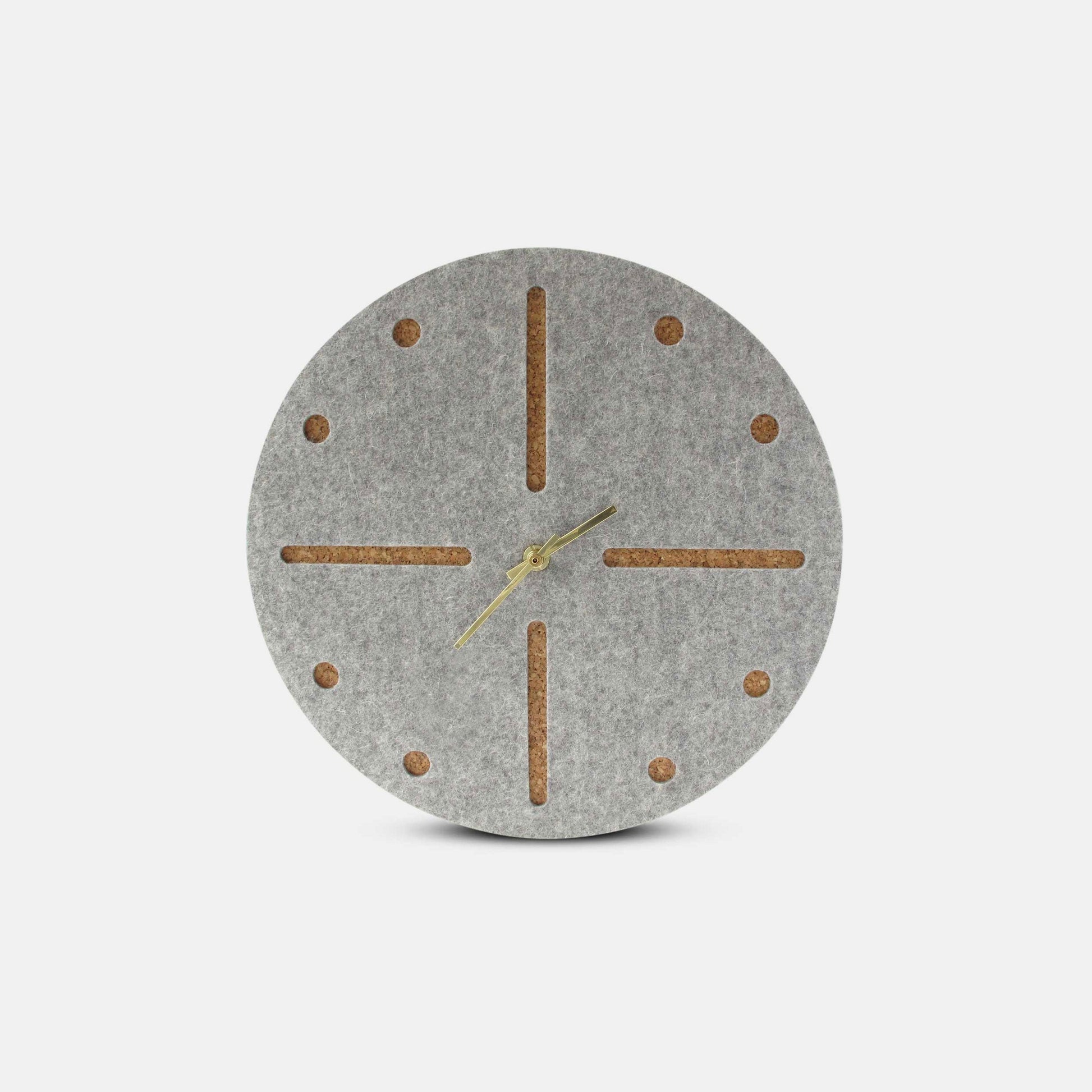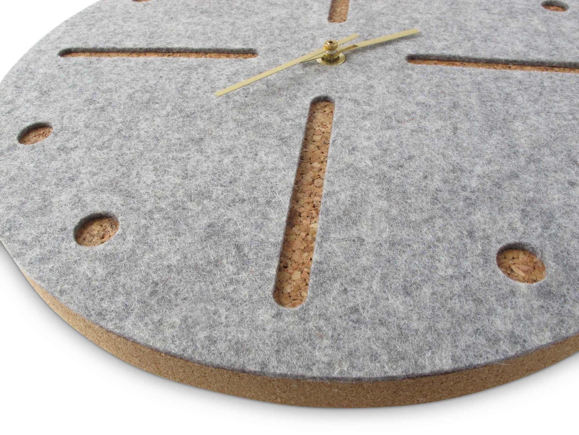 Wanduhr aus Filz und Kork 30 cm | hellgrau - gold | Design: Odense
