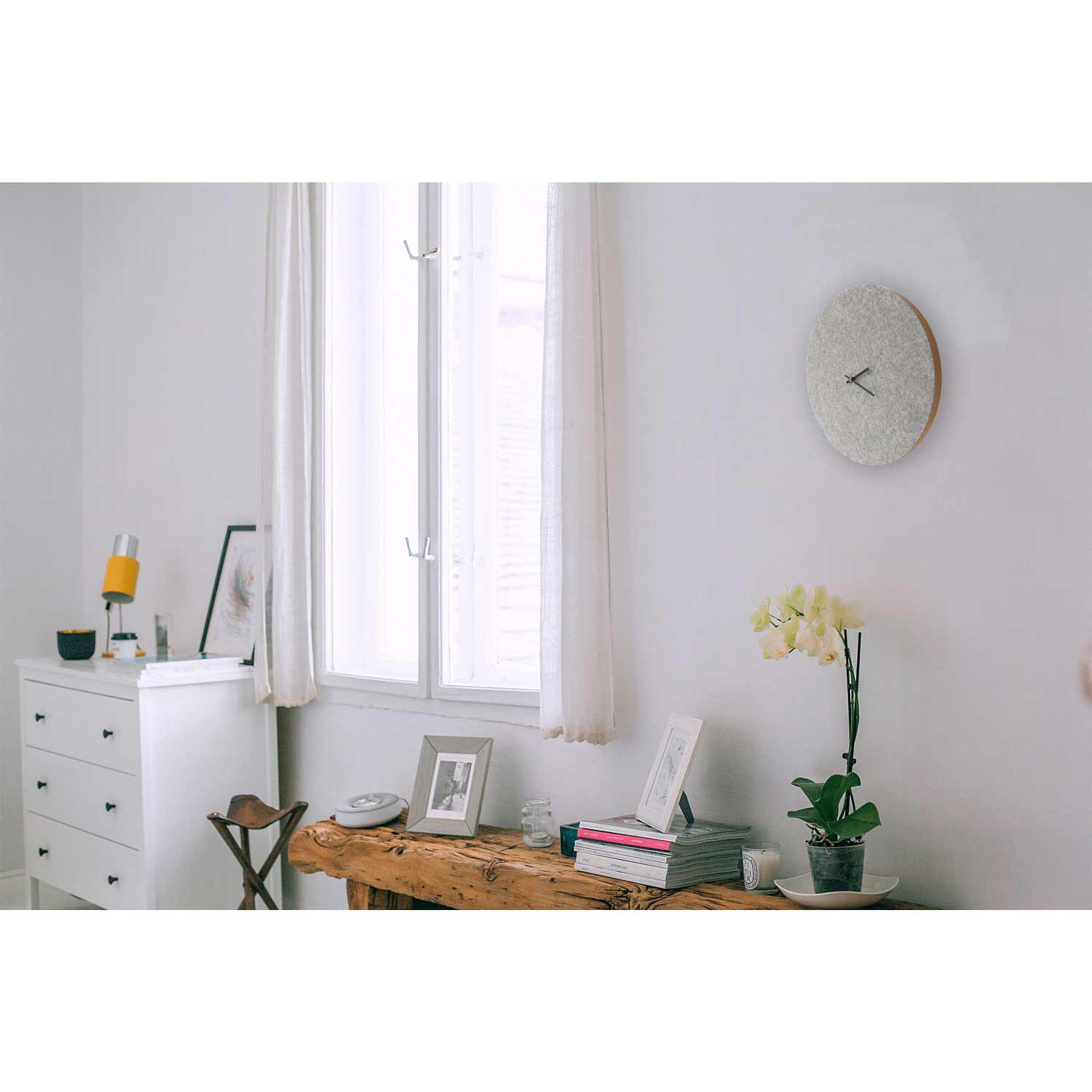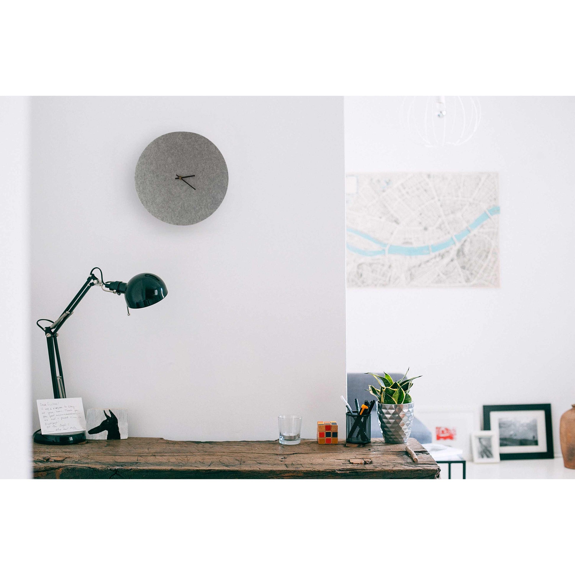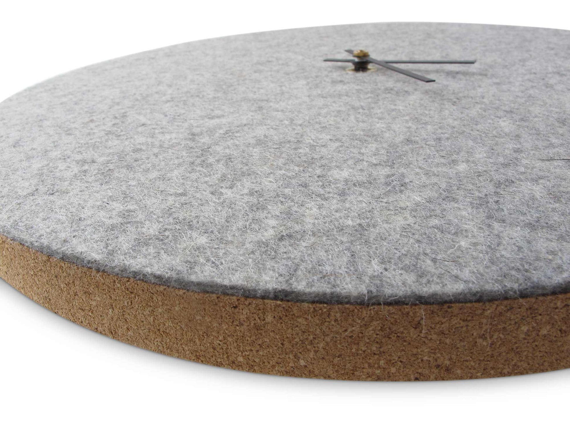 Wanduhr aus Filz und Kork 30 cm | hellgrau - schwarz | Design: Aalborg