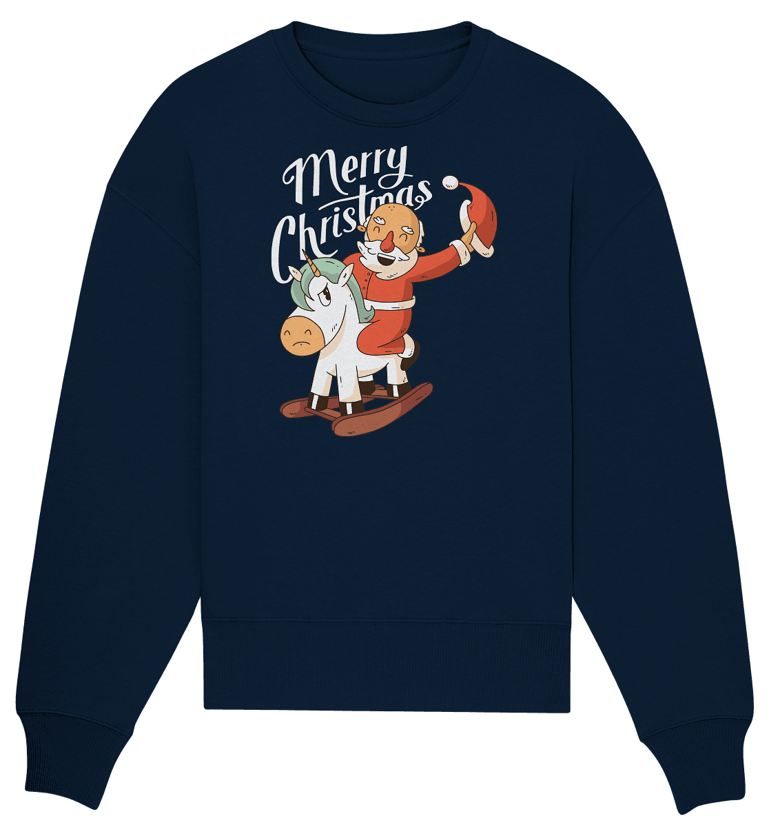 Weihnachten Nikolaus am Schaukelpferd Merry Christmas - Organic Oversize Sweatshirt