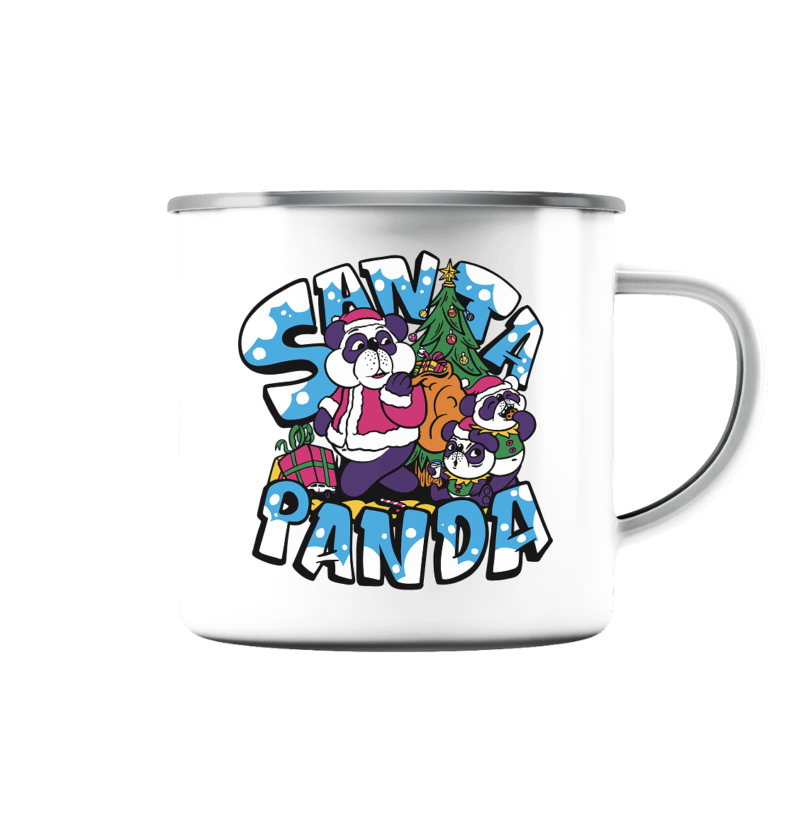Weihnachten, Santa Panda , Nikolaus Panda ,Merry Christmas - Emaille Tasse (Silber)